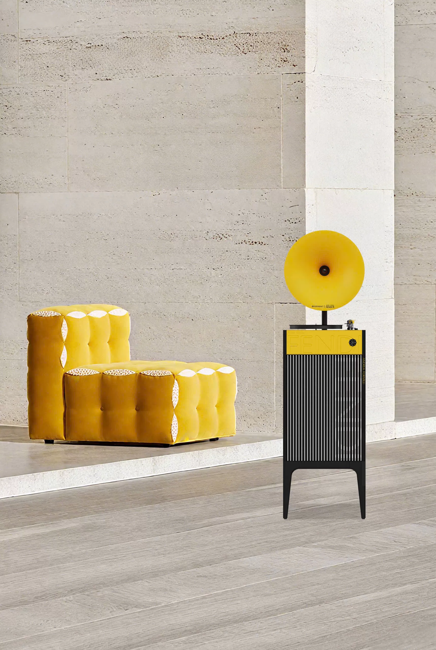 Fennessy Donut i5 F Major – phiên bản đặc biệt từ sự hợp tác giữa Fennessy Audio và nhà thiết kế Andrea Formilli Fendi – vừa ra mắt! Sản phẩm turntable all-in-one cao 1.6m, bugle vàng mustard sang trọng, tích hợp loa 110W, Bluetooth 5.0, kèm đĩa vinyl độc quyền.