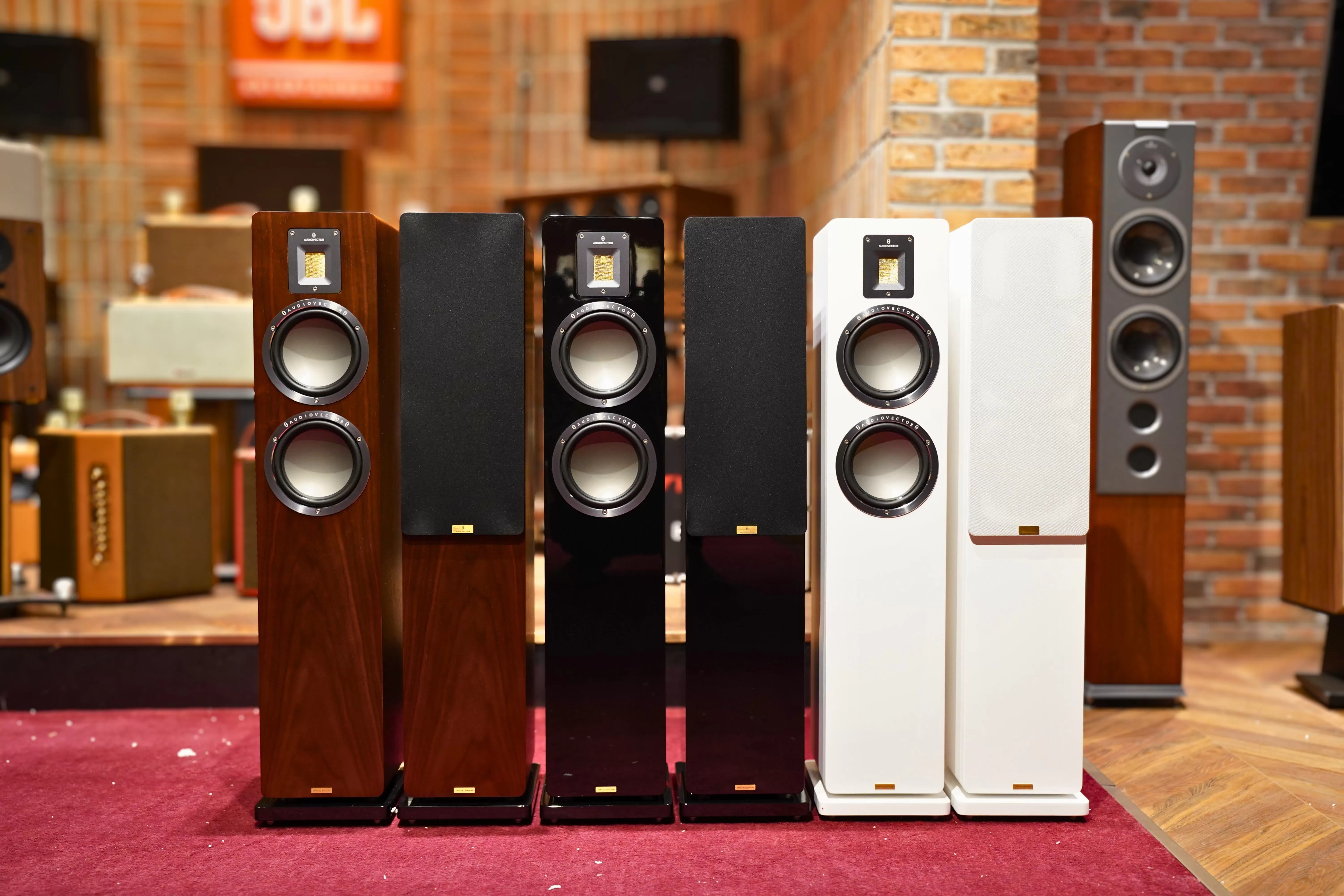 Logo "Audiovector QR-Series" và tem nhãn phía sau thùng loa được in sắc nét. Đặc biệt, ngay mặt trước, bảng tên nhỏ khắc dòng chữ "Special Edition" màu vàng kim nằm tinh tế dưới củ loa bass chính là điểm nhận diện quyền lực, phân biệt đẳng cấp so với phiên bản tiền nhiệm.