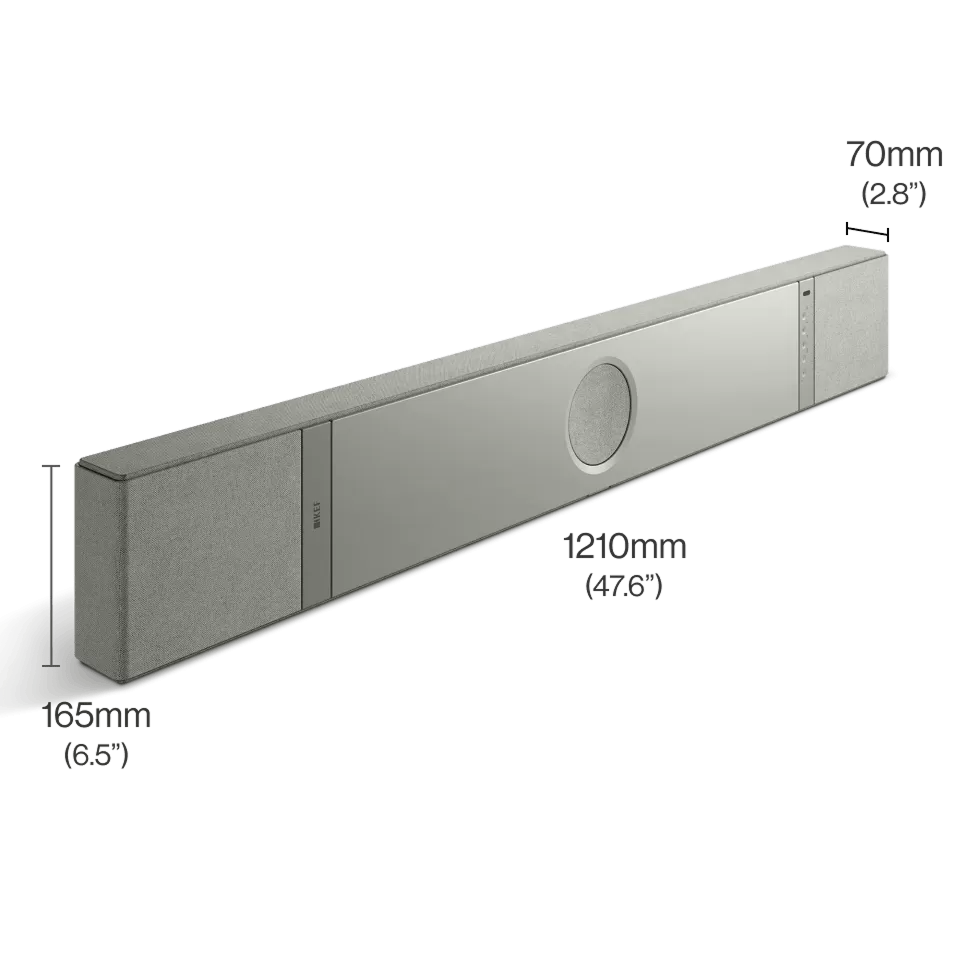 KEF XIO được chế tác từ nhôm cao cấp kết hợp với lớp vải bọc tinh tế, mang lại vẻ ngoài sang trọng phù hợp với các dòng TV từ 55 inch trở lên.